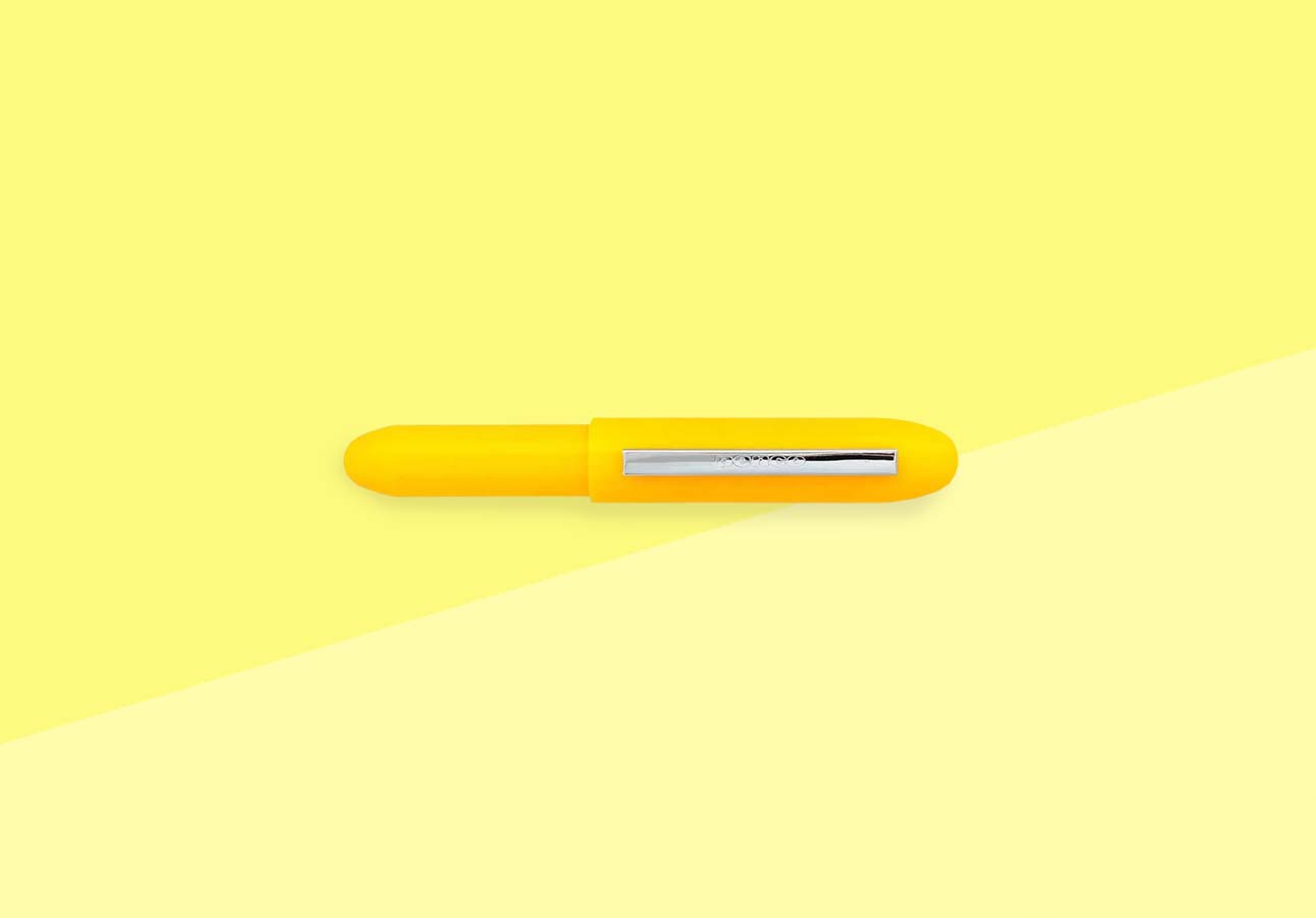 Penco's Bullet Ballpoint is a compact, bullet-shaped ballpoint pen. When opened, you can click the cap on the barrel to extend the pen for a comfortable grip.