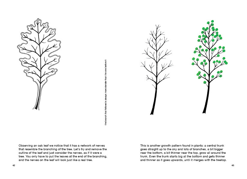 "Perfection, says an old oriental proverb, is beautiful but stupid: you have to understand it but break it. Now that you know how to draw a tree, as I think you do, there's no need to slavishly follow what I've shown you. Once you know the rule, you can draw the tree of your choice, completely different from the ones you've seen in this book. You can draw them with a pencil, a pen, a felt-tip market a paintbrush, crayons, chalk, a piece of brick, charcoal, your fingers. powders, chocolate, a shaving brush or a broom. You can make them out of paper, stiff card, corrugated board, packing paper, wire mesh, plastic, non-plastic, papier-mâché, wire, brass, aluminium, string, spaghetti, cloth, whatever you want. And then, above all, teach others how to do it". — Bruno Munari