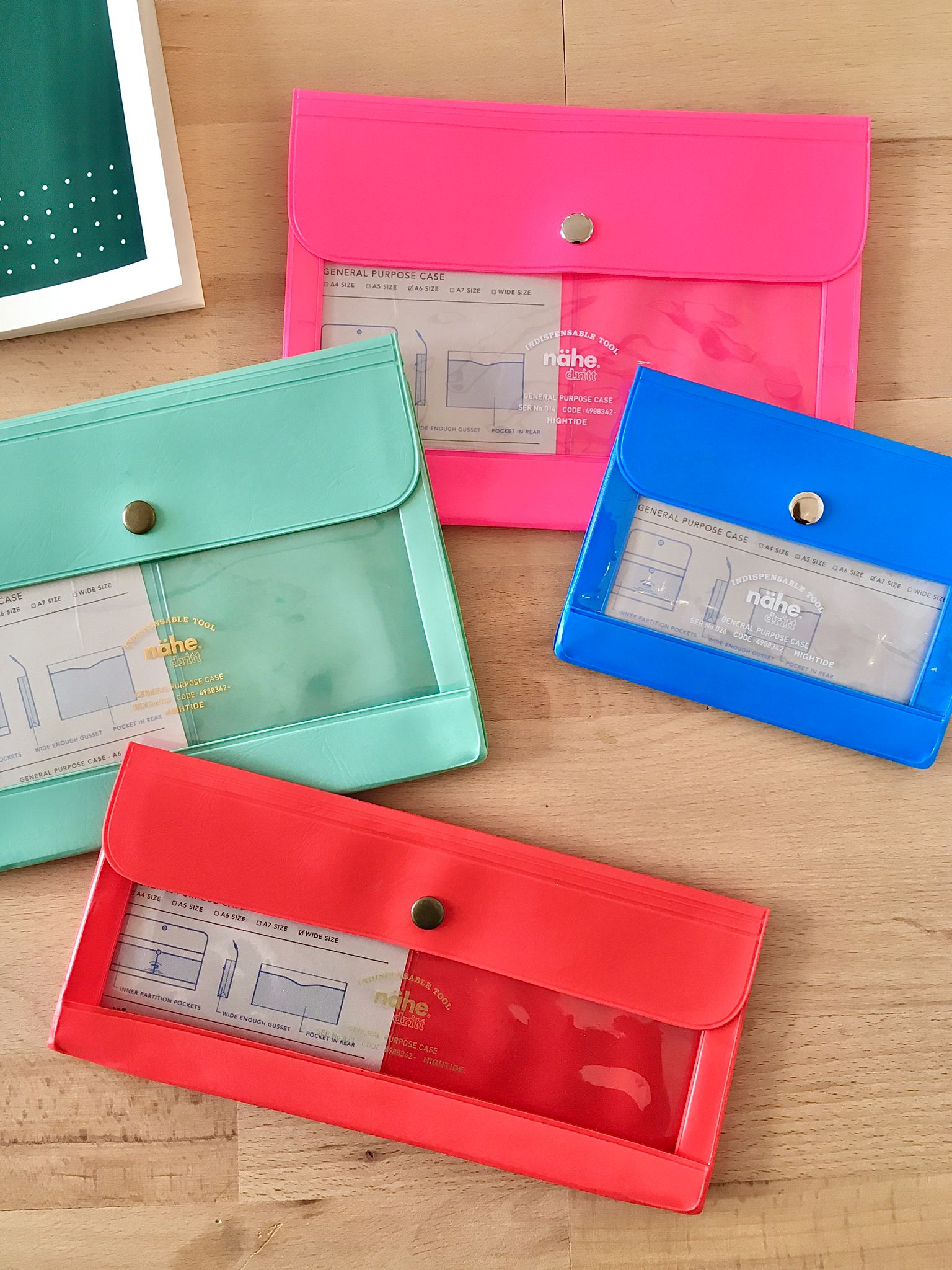 Ein Hauptfach mit einer zusätzlichen transparenten Tasche und eine weitere Tasche auf der Rückseite. Dieses Etui bewahrt nicht nur Ihre Belege oder Aufkleber auf, es kann sogar als Geldbörse verwendet werden und hat die perfekte Größe für Kaweco Sport oder Traveler's Company Stifte.