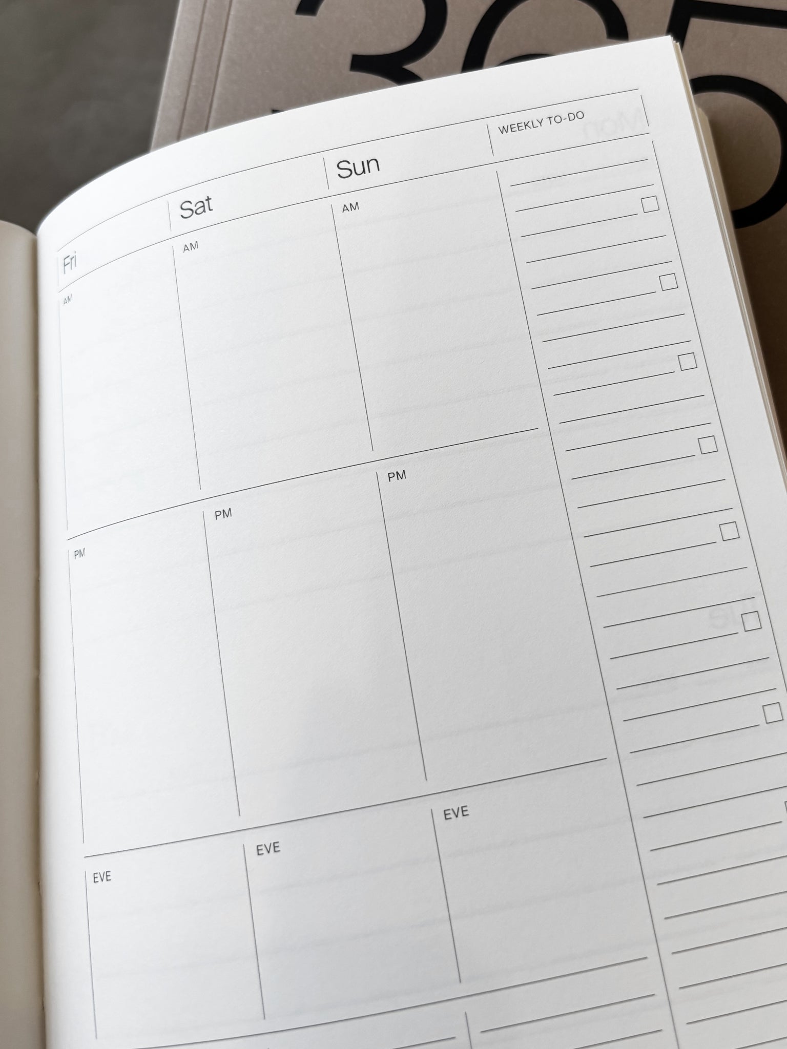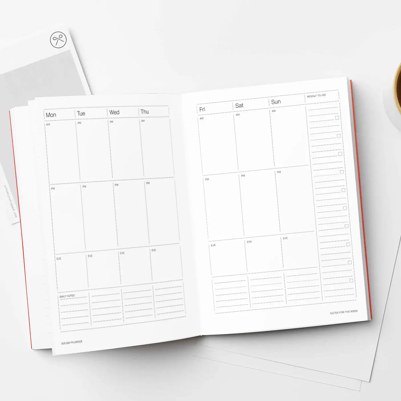 - Zwei Tage pro Seite mit Platz für Termine, Uhrzeiten und Notizen