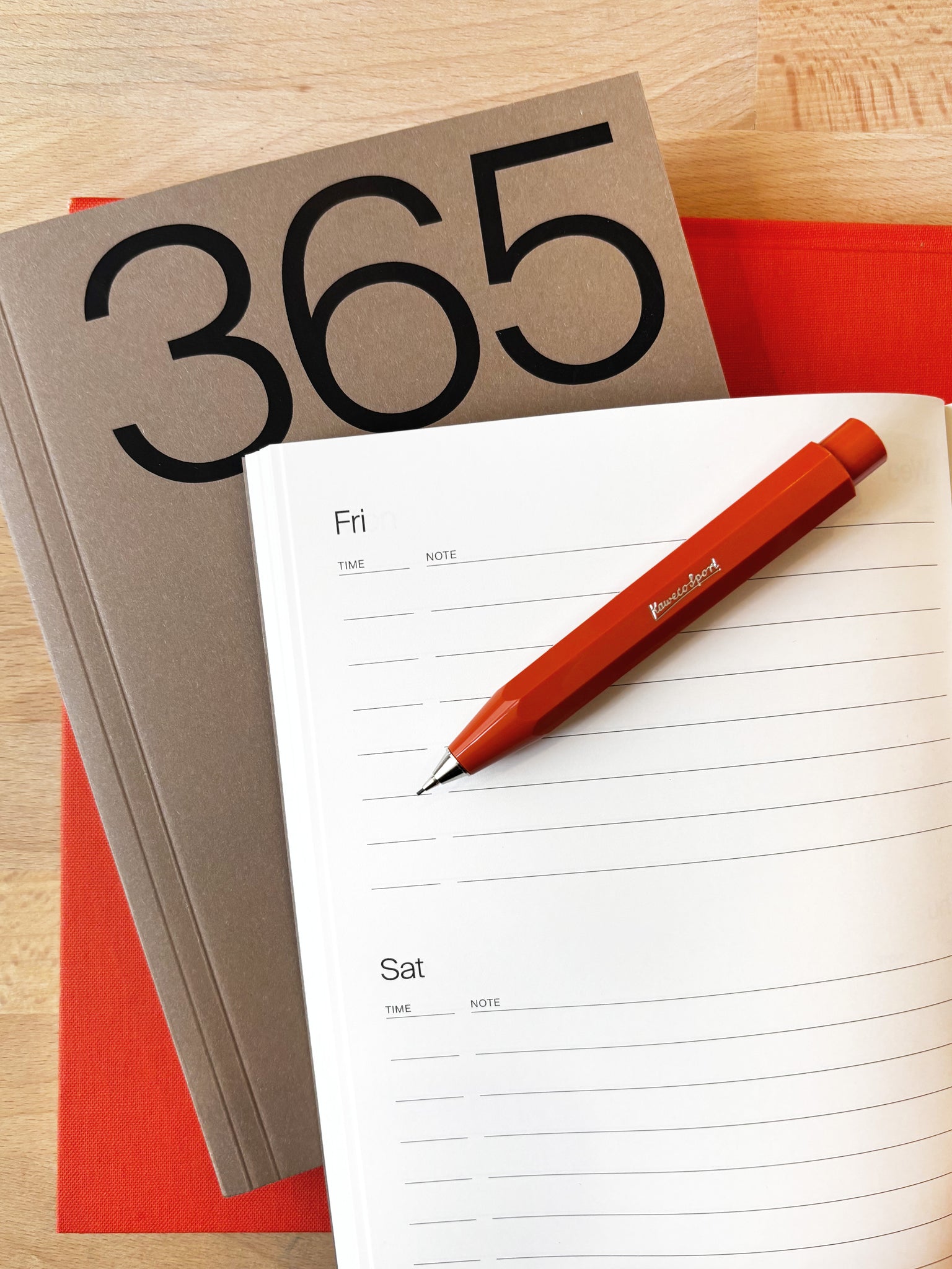 Dieser undatierte Planer von Kinshipped mit Layflat-Bindung und 365 Seiten ermöglicht es, den Terminkalender Tag für Tag im Blick zu behalten.