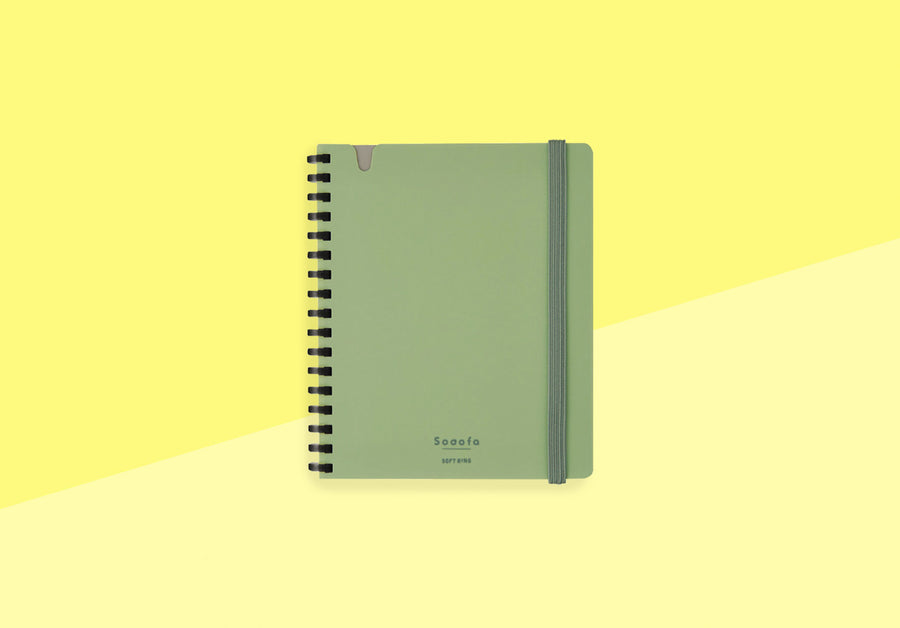 Das von Kokuyo entworfene „Sooofa Softring-Notizbuch” verfügt über Ringe aus weichem Kunststoff, die das Schreiben erleichtern.