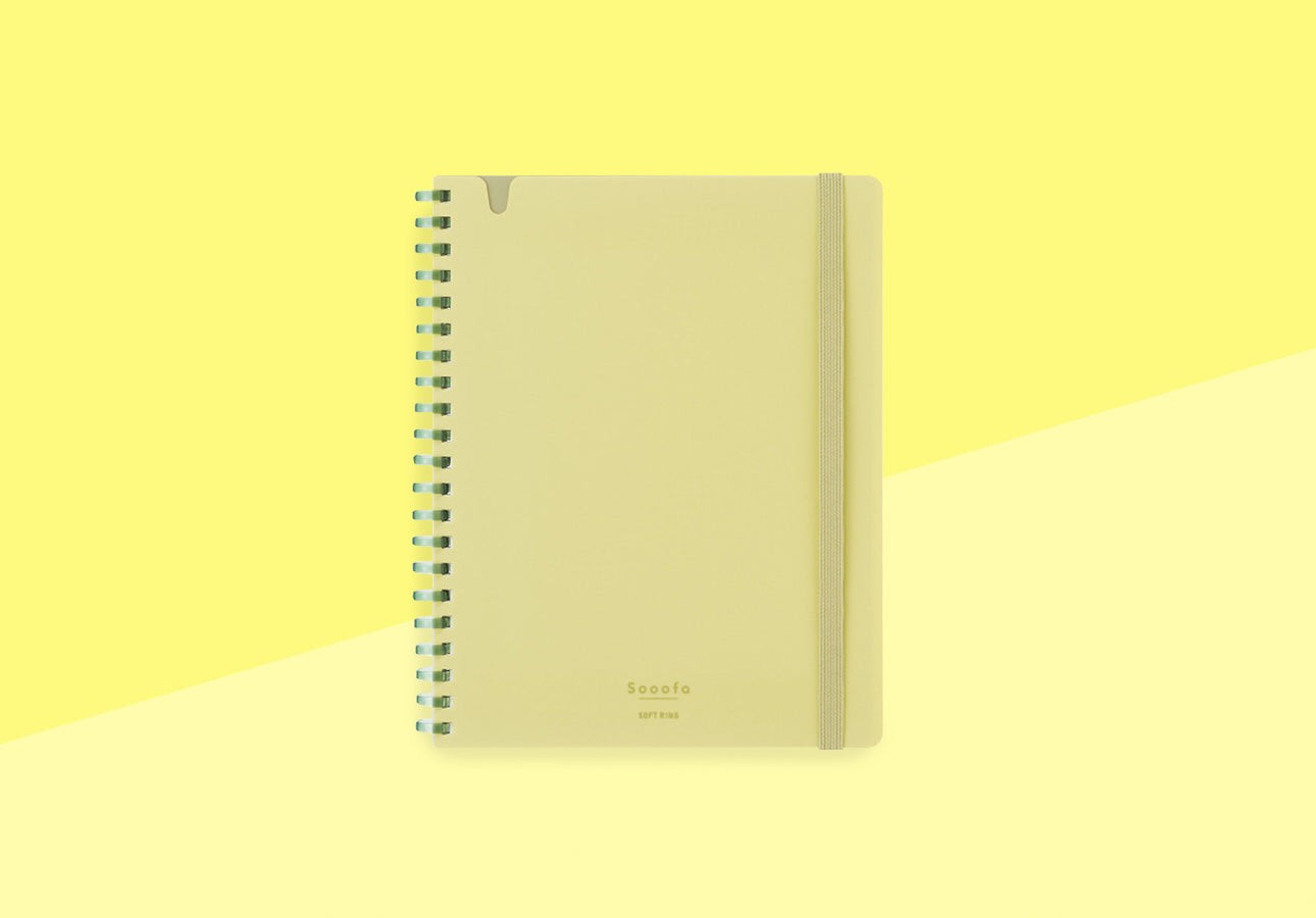 Dieses von Kokuyo entworfene A5-Notizbuch mit Softring hat Ringe aus weichem Kunststoff, die das Schreiben erleichtern.