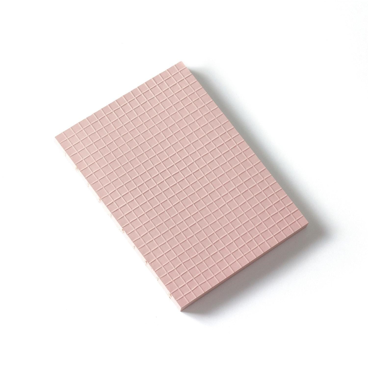 Es hat eine Fadenheftung und lässt sich um 180 Grad öffnen. Auf der Oberfläche des Einbands befindet sich ein geprägtes Gittermuster.