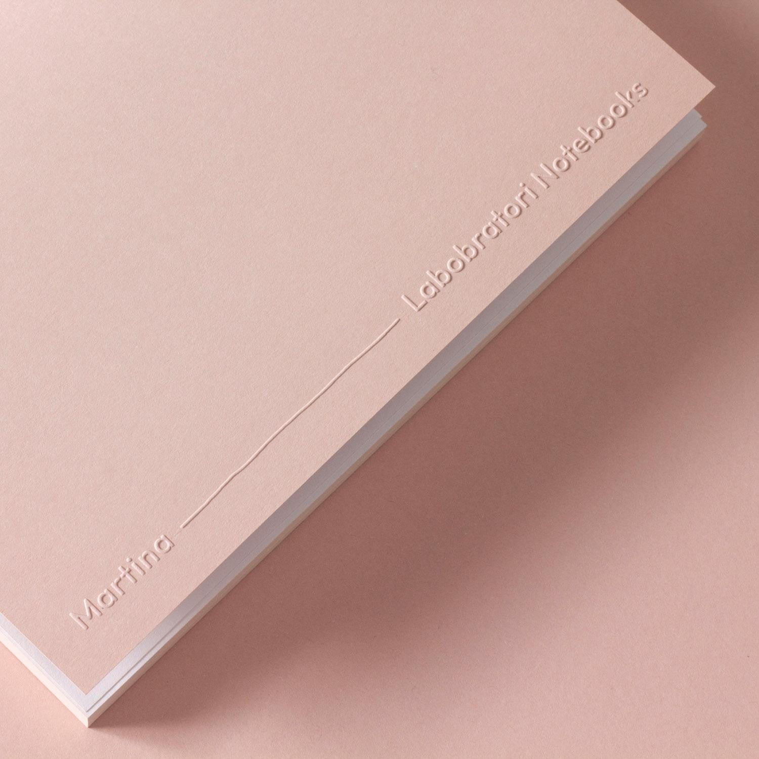 Das Notizbuch „Martina” von LABOBRATORI verfügt über einen geprägten Einband und eine Layflat-Bindung.