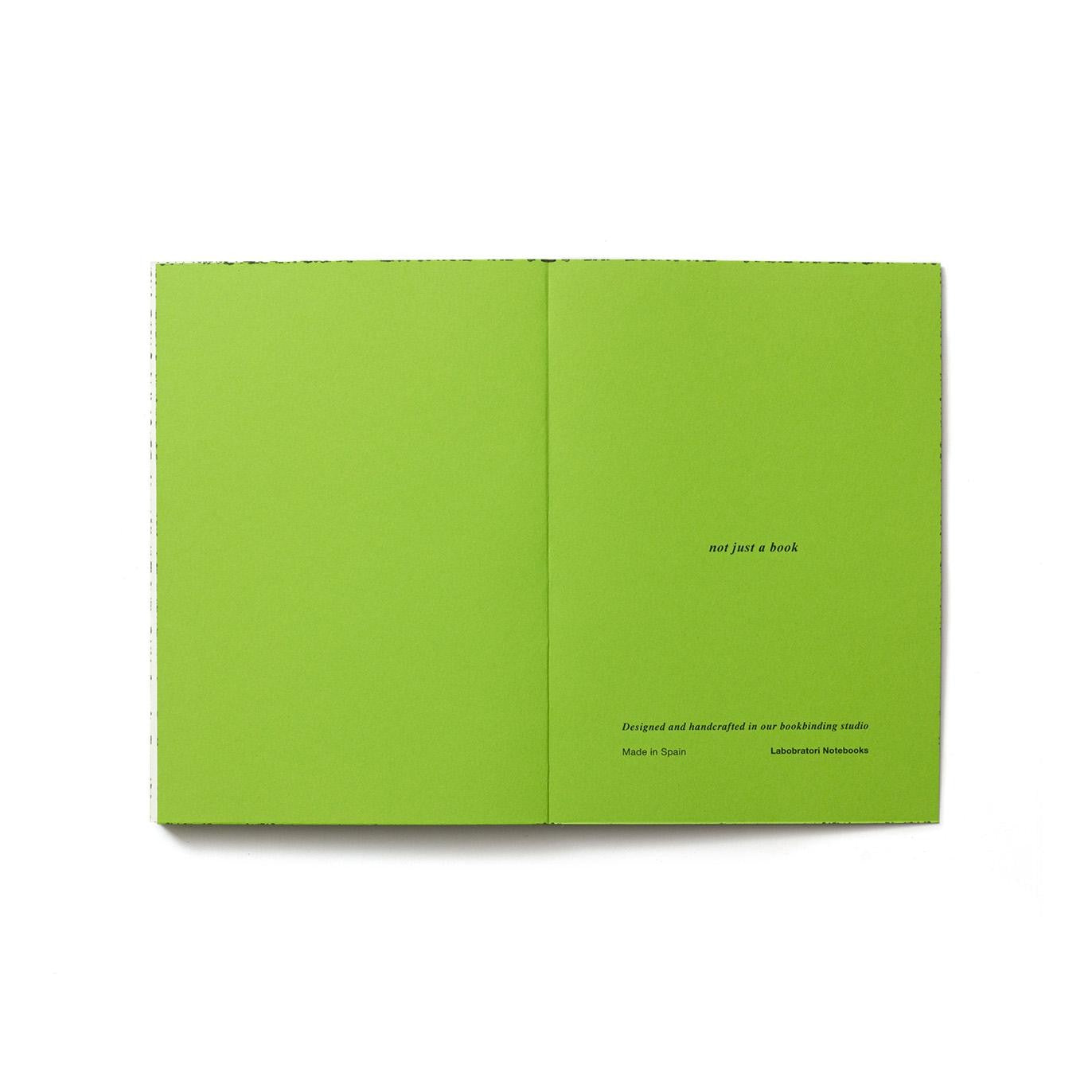 Dieses Notizbuch von LABOBRATORI hat eine Soft-Touch-Oberfläche mit einem coolen Print. Die Kanten sind von Hand mit Spray veredelt.